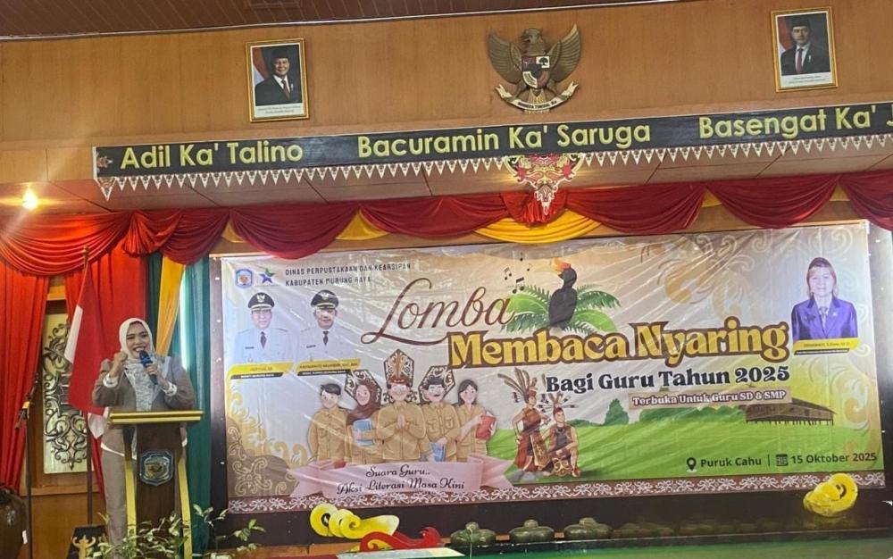 KaltengTop.com, Puruk Cahu – Dina Maulidah, Wakil Ketua I DPRD Kabupaten Murung Raya, menunjukkan komitmennya meningkatkan kualitas sumber daya manusia (SDM) di daerah dengan mendorong kebiasaan gemar membaca pada anak-anak sejak usia dini. Ia hadir dalam lomba membaca bagi pelajar yang diselenggarakan Dinas Perpustakaan dan Kearsipan Kabupaten Murung Raya di Aula Dewan Adat Dayak (DAD) pada Selasa (15/10/2025).