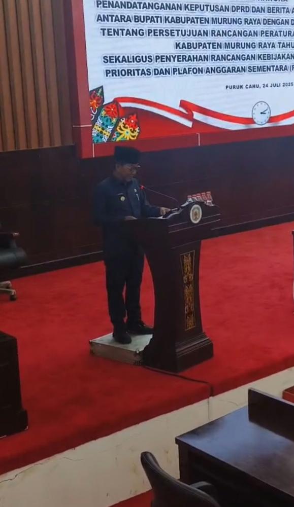 Pengesahan itu sendiri dilaksanakan melalui rapat paripurna DPRD Murung Raya dengan agenda penandatangan keputusan DPRD dan berita acara persetujuan bersama antara bupati dan DPRD tentang persetujuan Raperda RPJMD 2025-2029 yang dilaksanakan di ruang paripurna DPRD kabupaten Murung Raya di Puruk Cahu,Kamis (24/7/2025).