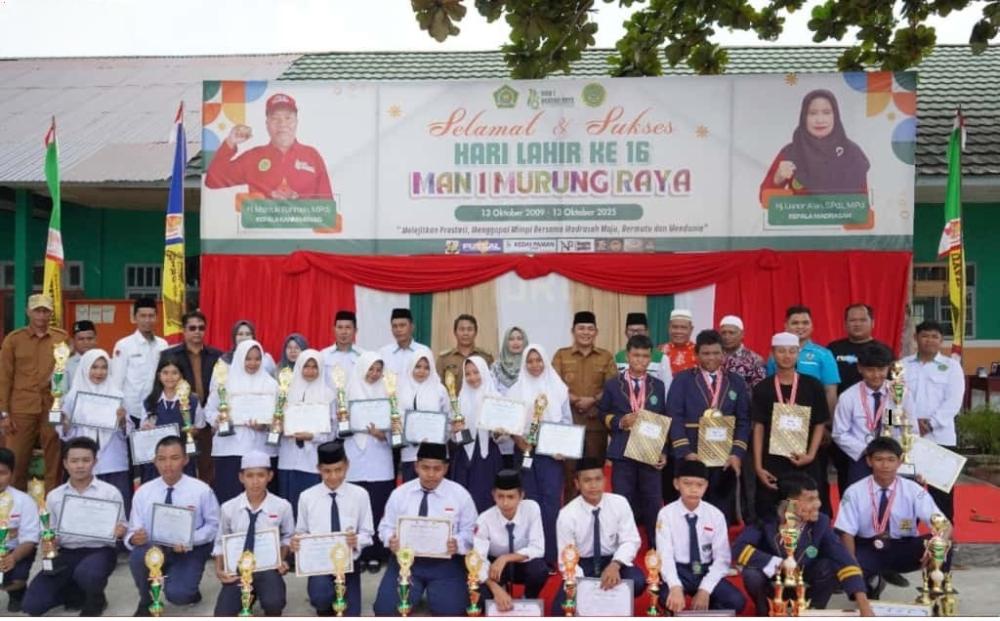 KaltengTop.com, Puruk Cahu – Wakil Bupati Murung Raya, Rahmanto Muhidin, menutup PORSENI MAN 1 Murung Raya dengan sukses di halaman sekolah, Senin (13/10/2025). Acara ini dimeriahkan dengan penampilan seni yang memukau dari siswa-siswi berprestasi, menandai HUT ke-16 MAN 1 Murung Raya.