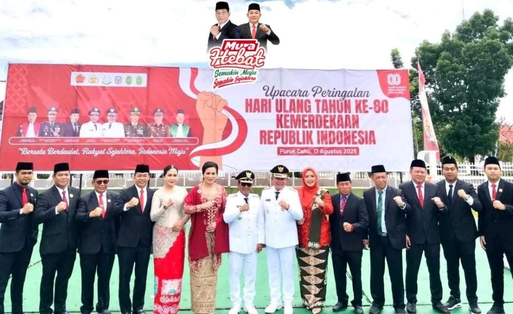 KaltengTop.com, Puruk Cahu – Peringatan Hari Ulang Tahun (HUT) Proklamasi Kemerdekaan Republik Indonesia Ke-80 di Kabupaten Murung Raya dimeriahkan dengan Upacara Detik-Detik yang berlangsung khidmat di halaman Kantor Bupati pada Minggu (17/8/2025). Ketua Dewan Perwakilan Rakyat Daerah (DPRD) Kabupaten Murung Raya, Rumiadi, S.E., S.H., M.H, turut hadir dalam upacara tersebut.