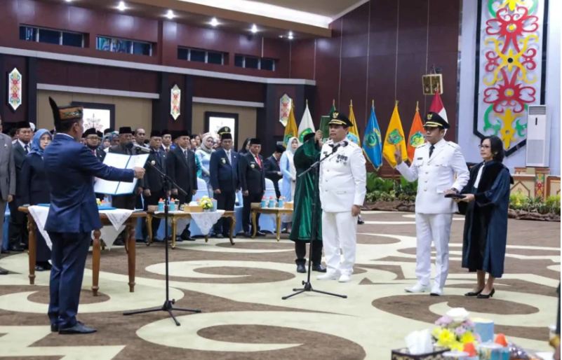 KaltengTop.com, Puruk Cahu – Pelantikan Bupati dan Wakil Bupati Barito Utara periode 2025-2030 berlangsung khidmat di Aula Jayang Tingang, Kantor Gubernur Kalimantan Tengah, Kota Palangka Raya, Jumat (10/10/2025). Gubernur Kalimantan Tengah, H. Agustiar Sabran, melantik Shalahuddin dan Felix Sonadi Y. Tingan sebagai Bupati dan Wakil Bupati Barito Utara.